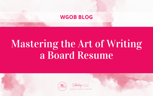 “I joined WGOB eight months ago and began my board journey. Through the members’ bi-weekly board job postings, I found many opportunities that aligned with my goals and interests. Resources were provided during the process which helped me to prepare my board resume. The advice and support I got from individual peers and at the monthly meetings were instrumental in preparing me for the interview process. I have just been appointed to my first not-for-profit board. Thank you to the WGOB community!”
